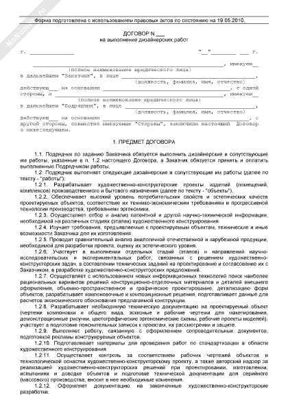 Договор на выполнение вскрышных работ (рекомендуемый образец заполнения)