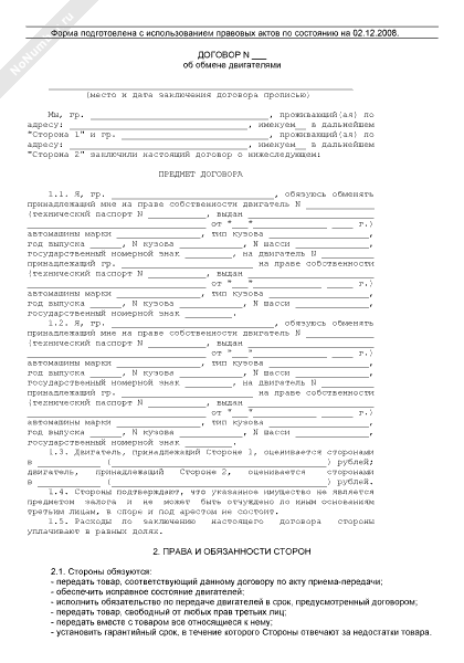 Договор об обмене двигателями (между гражданами)