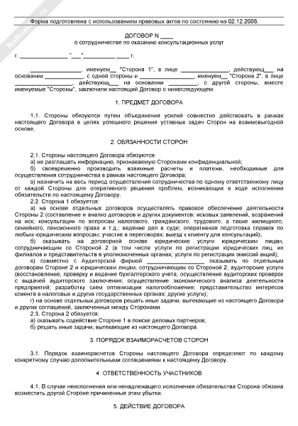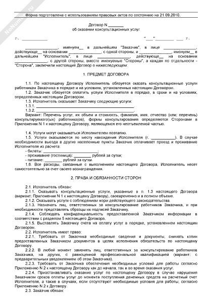 Договор об оказании работнику заказчика консультационных услуг (рекомендуемый образец заполнения)