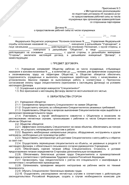 Договор о подборе и предоставлении рабочей силы из числа осужденных