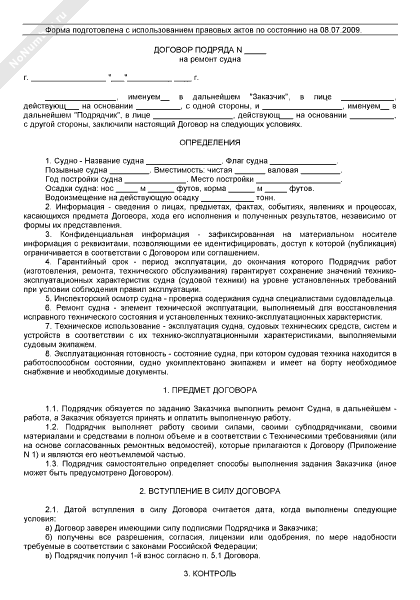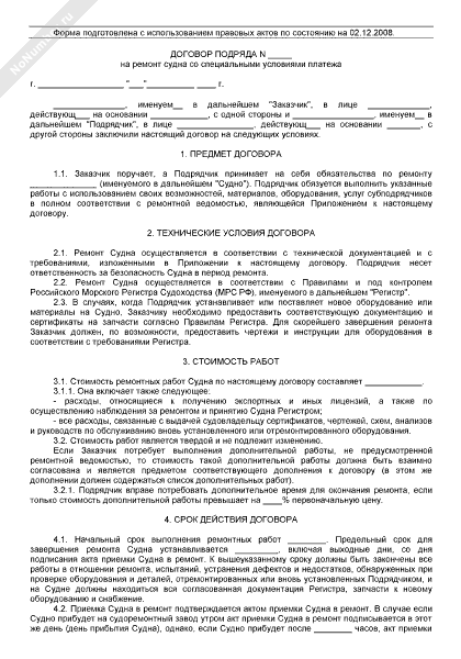 Договор подряда на ремонт судна (со специальными условиями платежа)
