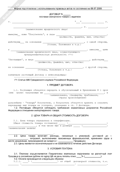 Договор поставки импортного товара (рекомендуемый образец заполнения)