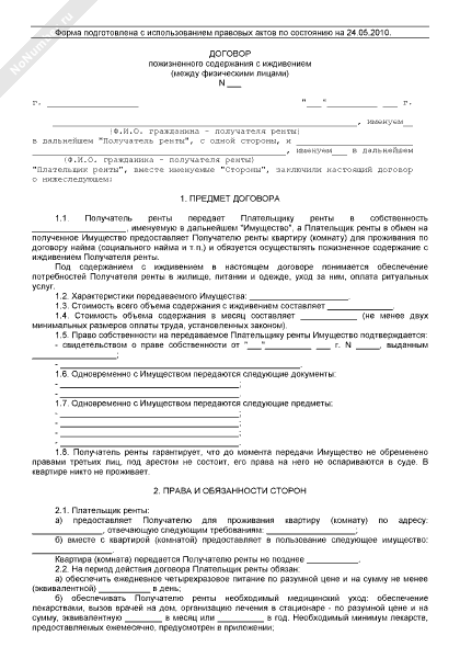 Договор пожизненного содержания с иждивением (между физическими лицами)