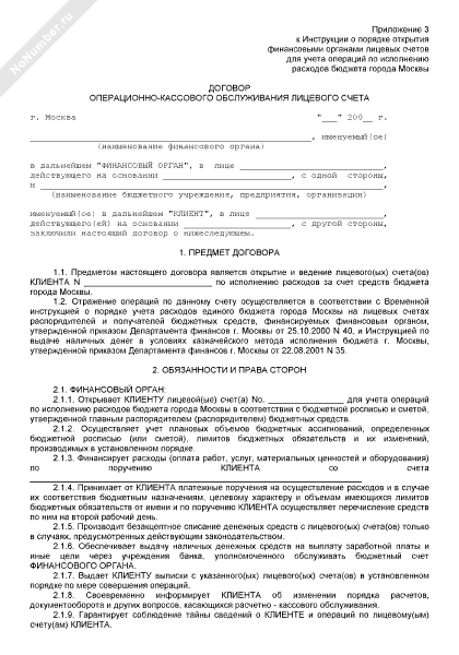 Договор расчетно-кассового обслуживания организации (рекомендуемый образец заполнения)
