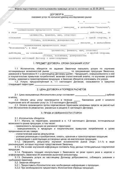 Договор оказания услуг по конъюнктурному исследованию рынка