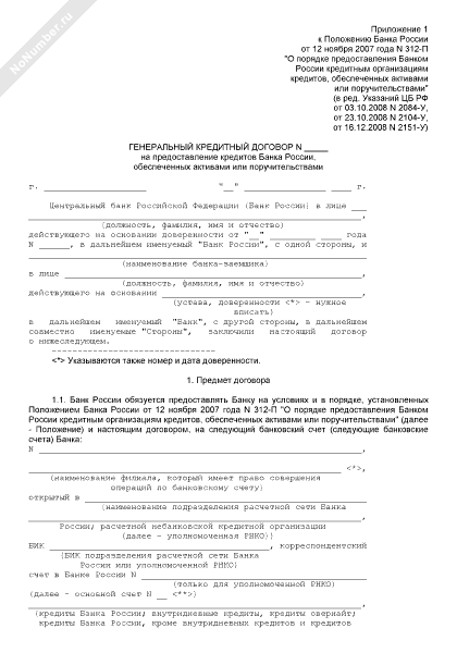 Генеральный кредитный договор на предоставление кредитов Банка России, обеспеченных активами или поручительствами (рекомендуемый образец заполнения)