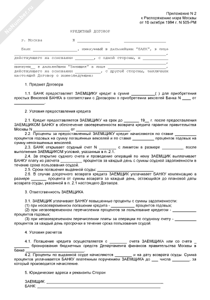 Кредитный договор для приобретения простых векселей банка