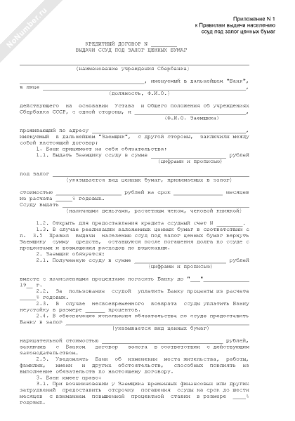 Кредитный договор выдачи ссуд под залог ценных бумаг