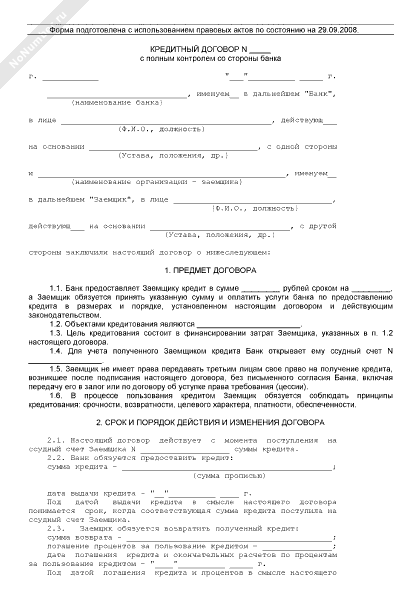 Кредитный договор (с полным контролем со стороны банка)