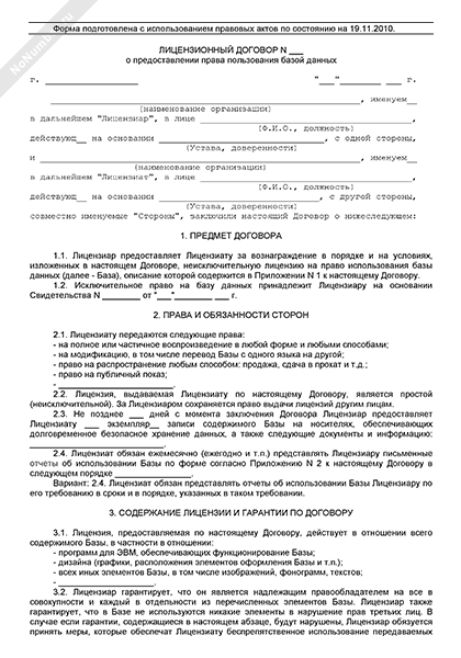 Лицензионный договор о предоставлении права пользования базой данных (неисключительная лицензия)
