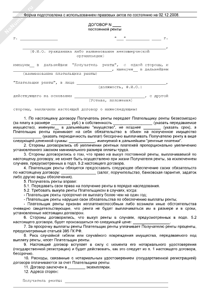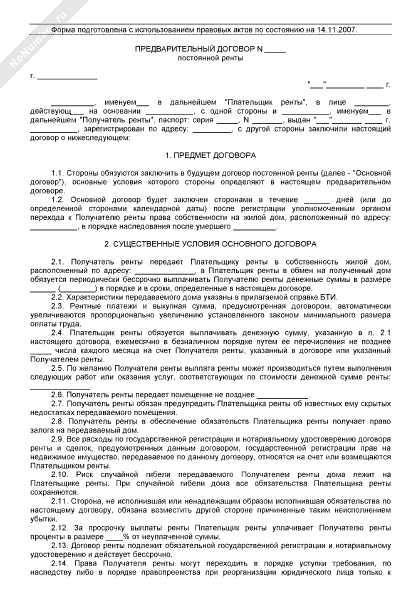 Предварительный договор постоянной ренты (рекомендуемый образец заполнения)