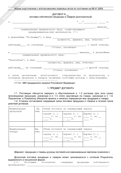 Договор поставки собственной продукции и товаров (долгосрочный)