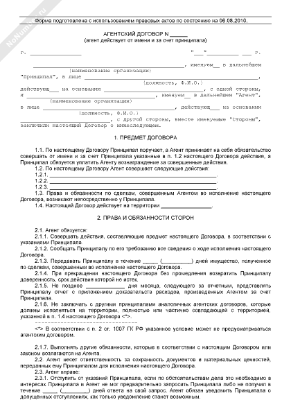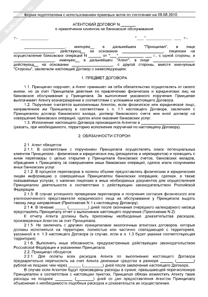 Агентский договор о привлечении клиентов на банковское обслуживание