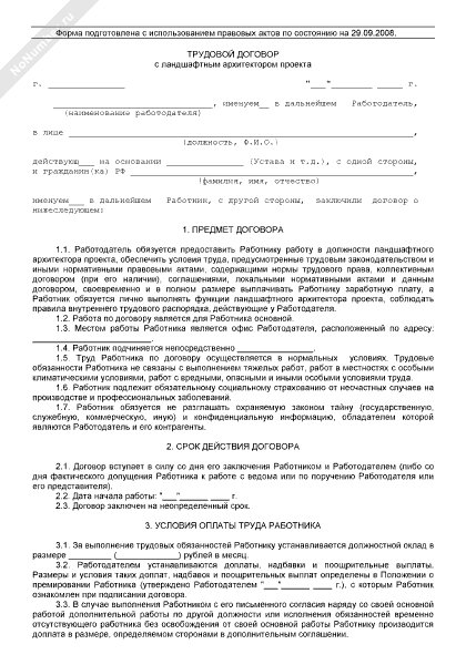 Трудовой договор с экономистом (бессрочный; без испытания)