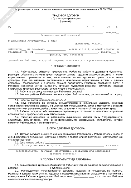 Трудовой договор с бухгалтером-ревизором (срочный)