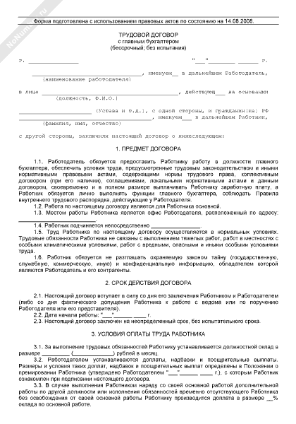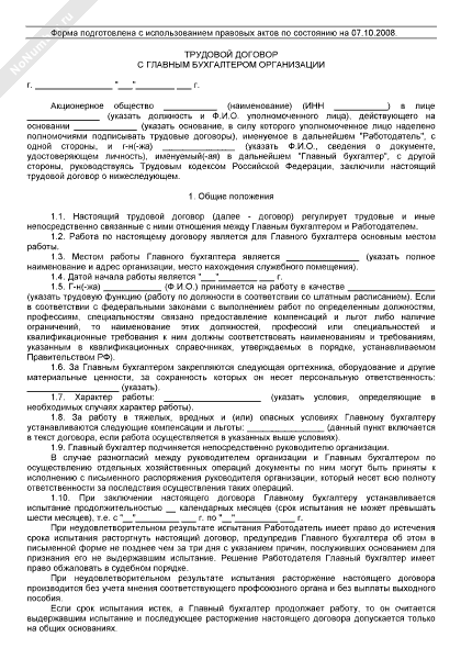 Трудовой договор с главным бухгалтером (бессрочный; без испытания)