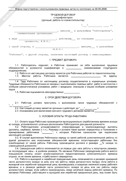Трудовой договор с кодификатором (срочный; работа по совместительству)