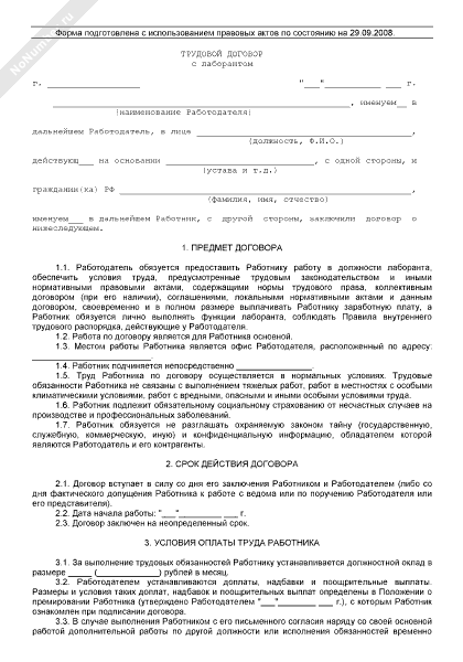Трудовой договор с менеджером по персоналу (бессрочный; без испытания)