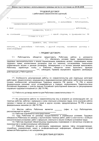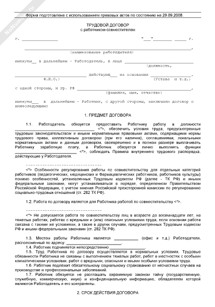 Трудовой договор с работником-совместителем