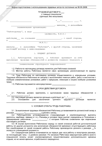 Трудовой договор с техником по метрологии (с условием об испытании)