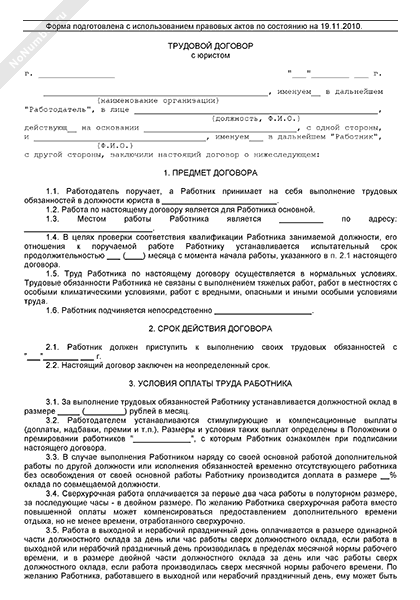 Трудовой договор с юристом (бессрочный, с испытательным сроком)