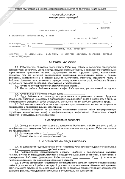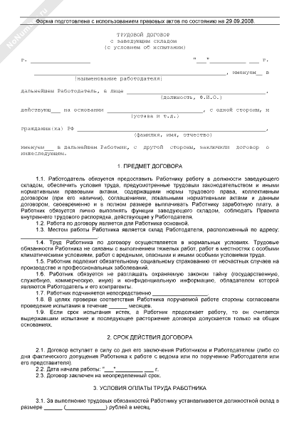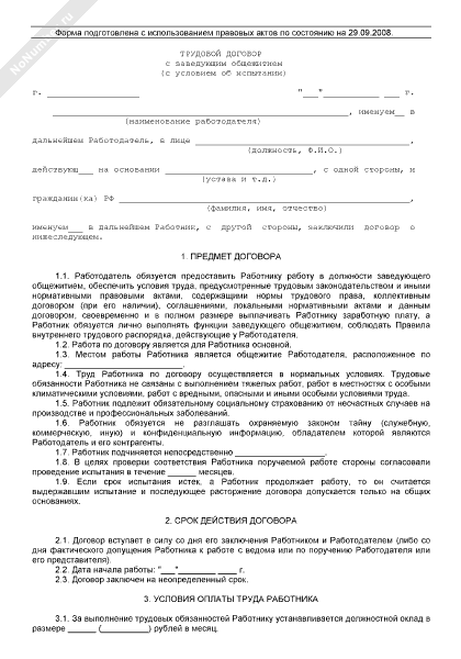 Трудовой договор с заведующим общежитием (с условием об испытании)