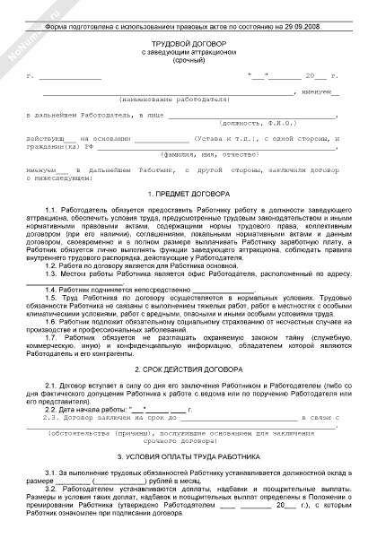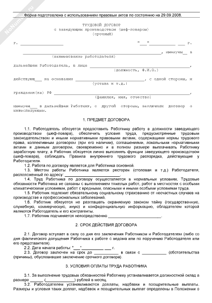 Трудовой договор с заведующим производством (шеф-поваром) (срочный)
