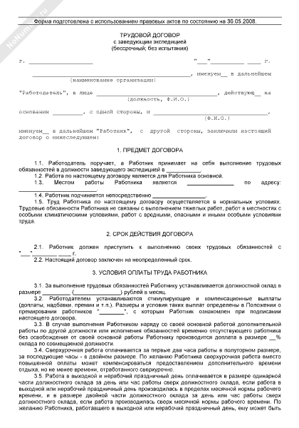 Трудовой договор с заведующим экспедицией (бессрочный; без испытания)