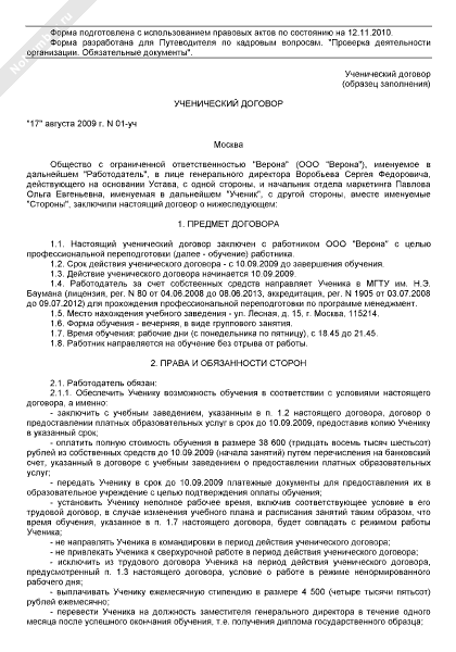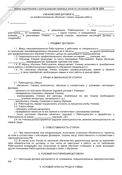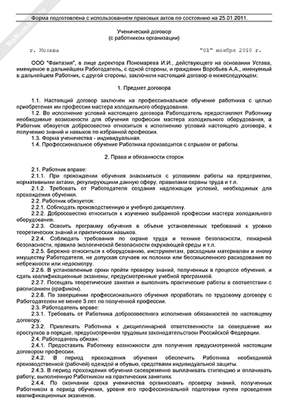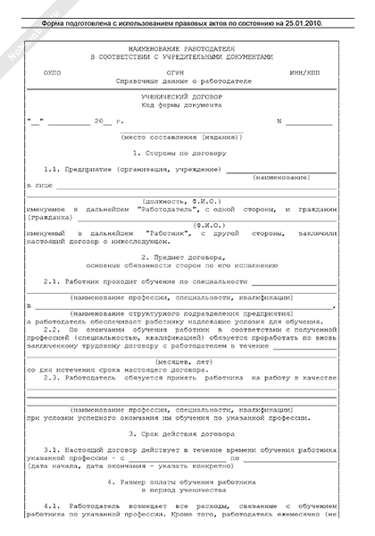 Ученический договор на профессиональное обучение с лицом, ищущим работу
