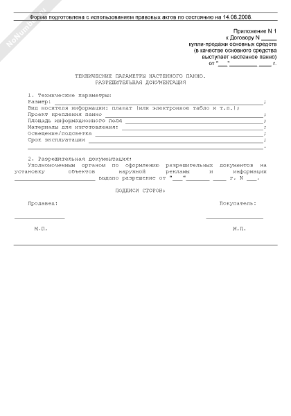 Технические параметры настенного панно. Разрешительная документация (приложение к договору купли-продажи основных средств (в качестве основного средства выступает настенное панно))