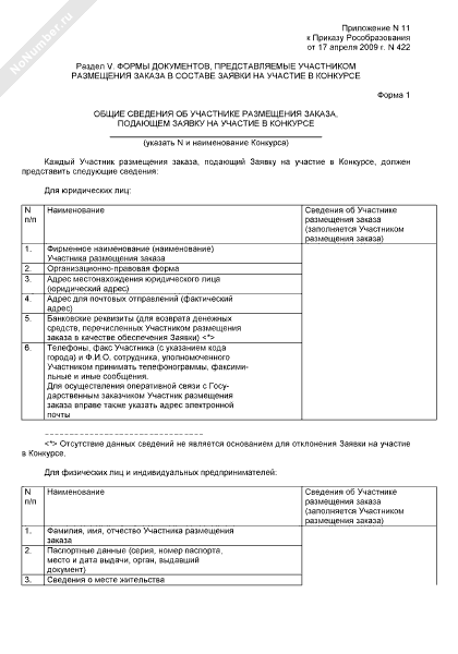 - 121Конкурсная документация открытого конкурса (для размещения заказа у субъектов малого предпринимательства) на поставку товара по проекту, проводимому в рамках реализации федеральных целевых, государственных и иных программ в сфере образования, воспитания и развития общедоступных образовательных ресурсов. Формы документов, представляемые участником размещения заказа в составе заявки на участие в конкурсе. Общие сведения об участнике размещения заказа, подающем заявку на участие в конкурсе (форма № 1)