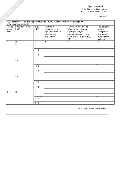 Конкурсная документация открытого конкурса (многолотовая) на выполнение научно-исследовательских работ по проекту, проводимому в рамках реализации федеральных целевых, государственных и иных программ в сфере образования, воспитания и развития общедоступных образовательных ресурсов. Формы документов, представляемых участником размещения заказа в составе заявки на участие в конкурсе по лоту. Квалификация участника размещения заказа применительно к специфике размещаемого заказа (форма № 7)