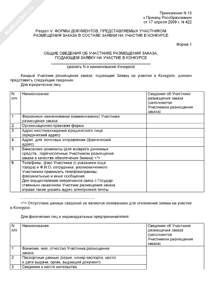 Конкурсная документация открытого конкурса (для размещения заказа по многолетним проектам) на выполнение научно-исследовательских работ по проекту, проводимому в рамках реализации федеральных целевых, государственных и иных программ в сфере образования, воспитания и развития общедоступных образовательных ресурсов. Формы документов, представляемых участником размещения заказа в составе заявки на участие в конкурсе. Общие сведения об участнике размещения заказа, подающем заявку на участие в конкурсе (форма № 1)