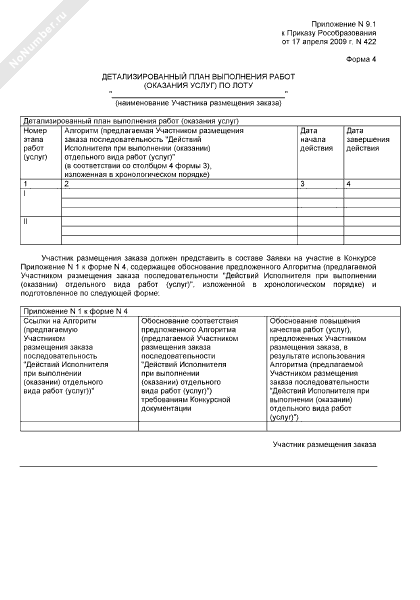 Конкурсная документация открытого конкурса для размещения заказа у субъектов малого предпринимательства (многолотовая) на выполнение работ (оказание услуг) по проекту, проводимому в рамках реализации федеральных целевых, государственных и иных программ в сфере образования, воспитания и развития общедоступных образовательных ресурсов. Формы документов, представляемых участником размещения заказа в составе заявки на участие в конкурсе по лоту. Детализированный план выполнения работ (оказания услуг) по лоту (форма № 4)