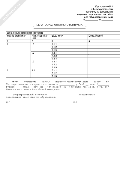 Конкурсная документация открытого конкурса для размещения заказа у субъектов малого предпринимательства (многолотовая) на выполнение научно-исследовательских работ по проекту, проводимому в рамках реализации федеральных целевых, государственных и иных программ в сфере образования, воспитания и развития общедоступных образовательных ресурсов. Цена государственного контракта (приложение к государственному контракту на выполнение научно-исследовательских работ для государственных нужд)