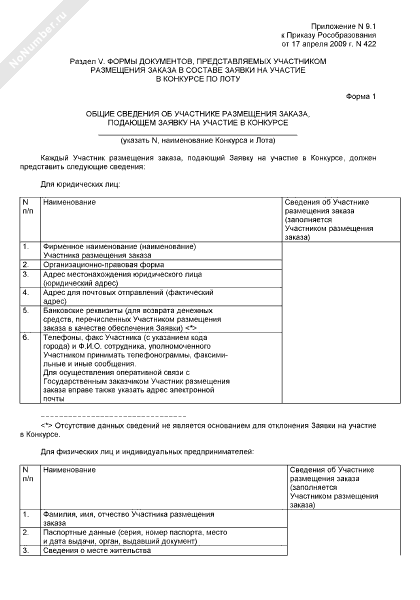 Конкурсная документация открытого конкурса для размещения заказа у субъектов малого предпринимательства (многолотовая) на выполнение работ (оказание услуг) по проекту, проводимому в рамках реализации федеральных целевых, государственных и иных программ в сфере образования, воспитания и развития общедоступных образовательных ресурсов. Формы документов, представляемых участником размещения заказа в составе заявки на участие в конкурсе по лоту. Общие сведения об участнике размещения заказа, подающем заявку на участие в конкурсе (форма № 1)