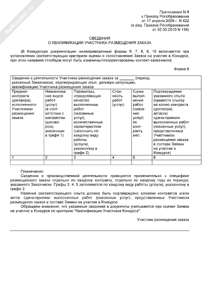 Конкурсная документация открытого конкурса (по многолетним проектам) на выполнение работ (оказание услуг) по проекту, проводимому в рамках реализации федеральных целевых, государственных и иных программ в сфере образования, воспитания и развития общедоступных образовательных ресурсов. Формы документов, представляемых участником размещения заказа в составе заявки на участие в конкурсе. Сведения о квалификации участника размещения заказа (форма № 6)
