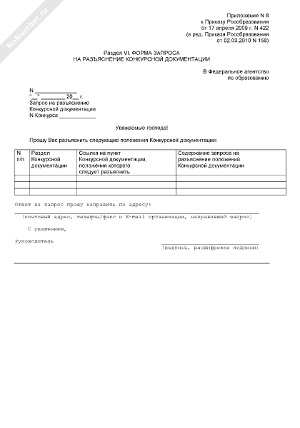 - Источник– Приказ Рособразования от 17.04.2009 № 422 (редакция от 02.03.2010 № 158)