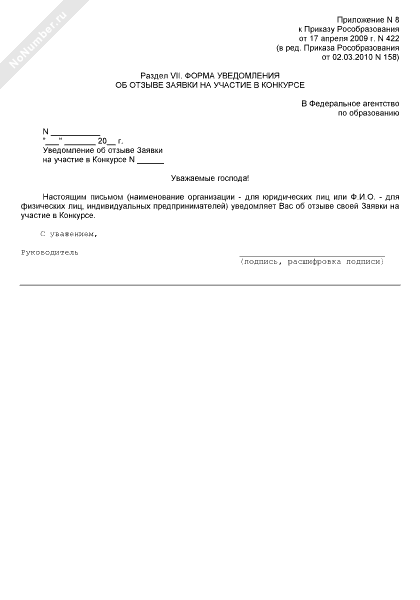 - Источник– Приказ Рособразования от 17.04.2009 № 422 (редакция от 02.03.2010 № 158)