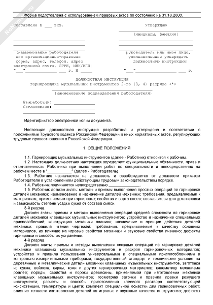 - 278Должностная инструкция гарнировщика музыкальных инструментов 2-го (3, 4) разряда