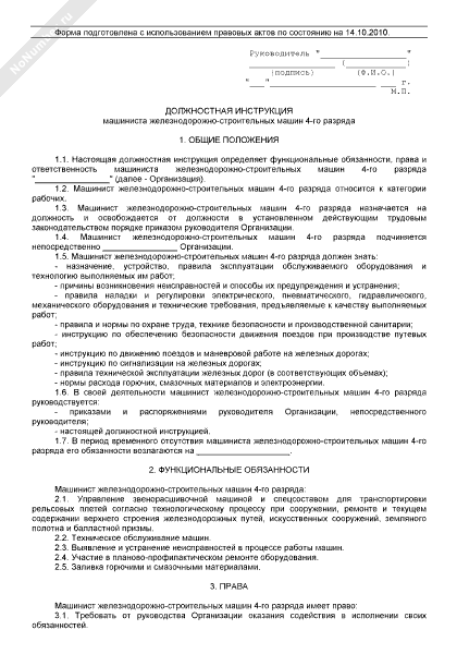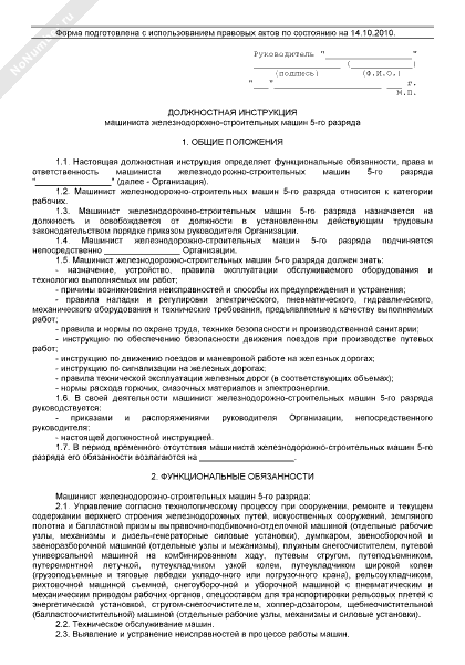 - 330Должностная инструкция машиниста железнодорожно-строительных машин 5-го разряда