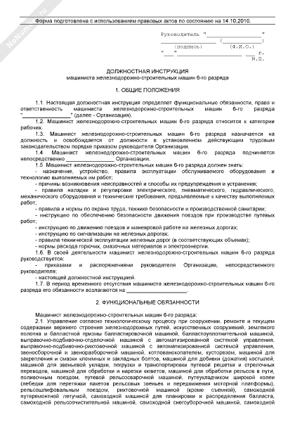 - 331Должностная инструкция машиниста железнодорожно-строительных машин 6-го разряда