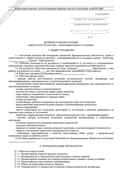 - 477Должностная инструкция дефектоскописта рентгено-, гаммаграфирования 4-го разряда