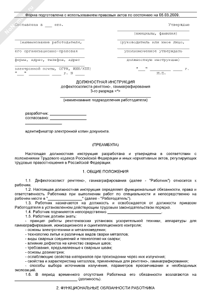 - 476Должностная инструкция дефектоскописта рентгено-, гаммаграфирования 3-го разряда