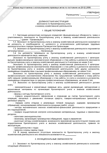 - 480Должностная инструкция экономиста по бухгалтерскому учету и анализу хозяйственной деятельности