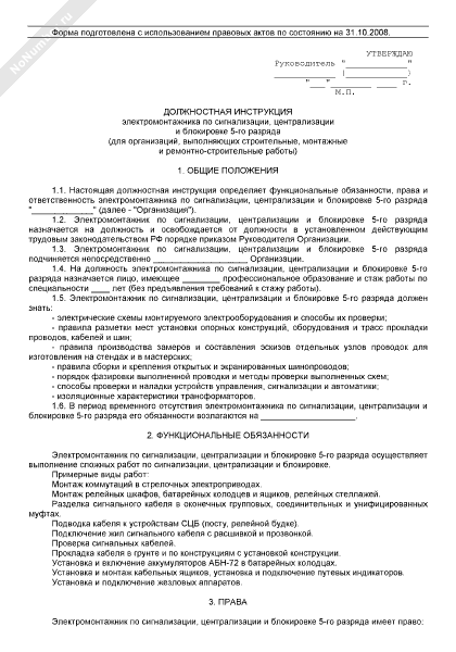 - 608Должностная инструкция электромонтажника по сигнализации, централизации и блокировке 5-го разряда (для организаций, выполняющих строительные, монтажные и ремонтно-строительные работы)