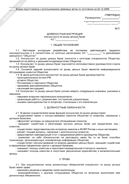 - 605Должностная инструкция консультанта по рынку ценных бумаг