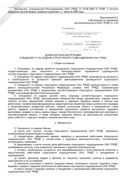 - 603Должностная инструкция специалиста по кадрам структурного подразделения открытого акционерного общества «Российские железные дороги»