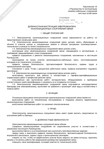 - 698Должностная инструкция электромонтера канализационных сооружений связи