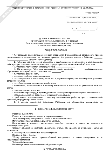 - 932Должностная инструкция кровельщика по стальным кровлям 3-го разряда (для организаций, выполняющих строительные, монтажные и ремонтно-строительные работы)